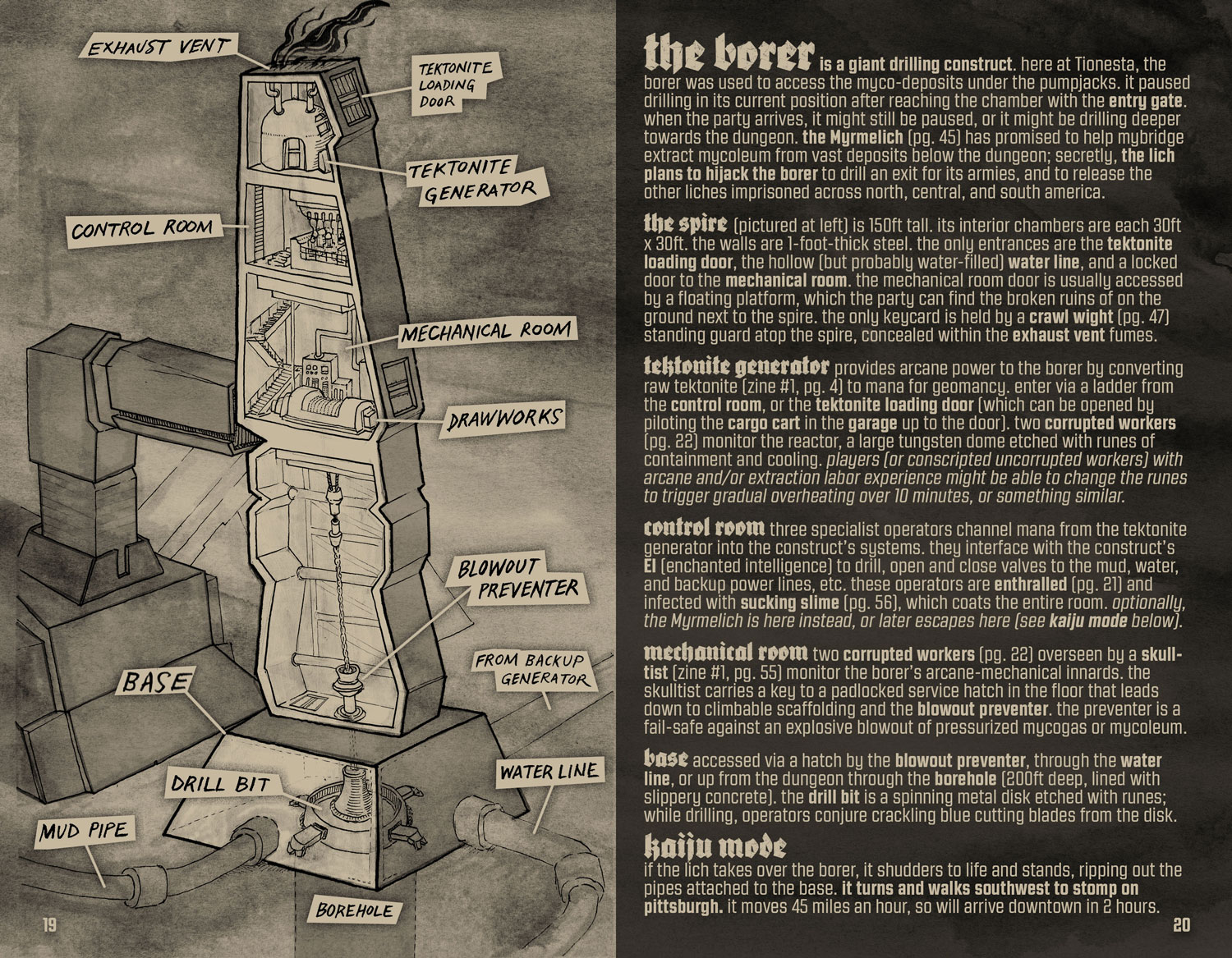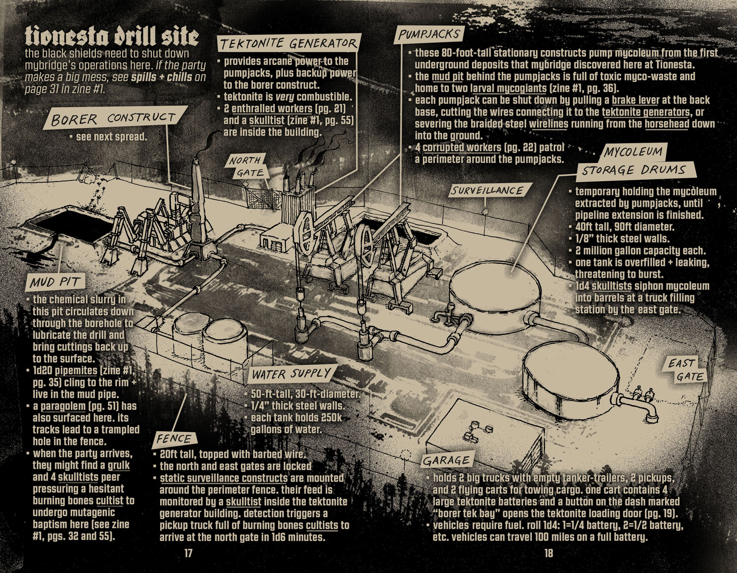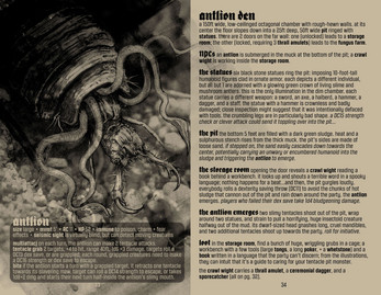 Extinction | Follow the Feystone Hex-L Pipeline underground and discover a devastating secret. Vent your rage and despair by bludgeoning the reanimated fossils of animals that early humans ushered towards extinction as we discovered how smart and cool and violent we have the potential to be. Also, this one's got liches. 56 pages / 8.5 x 5.5” / system agnostic.